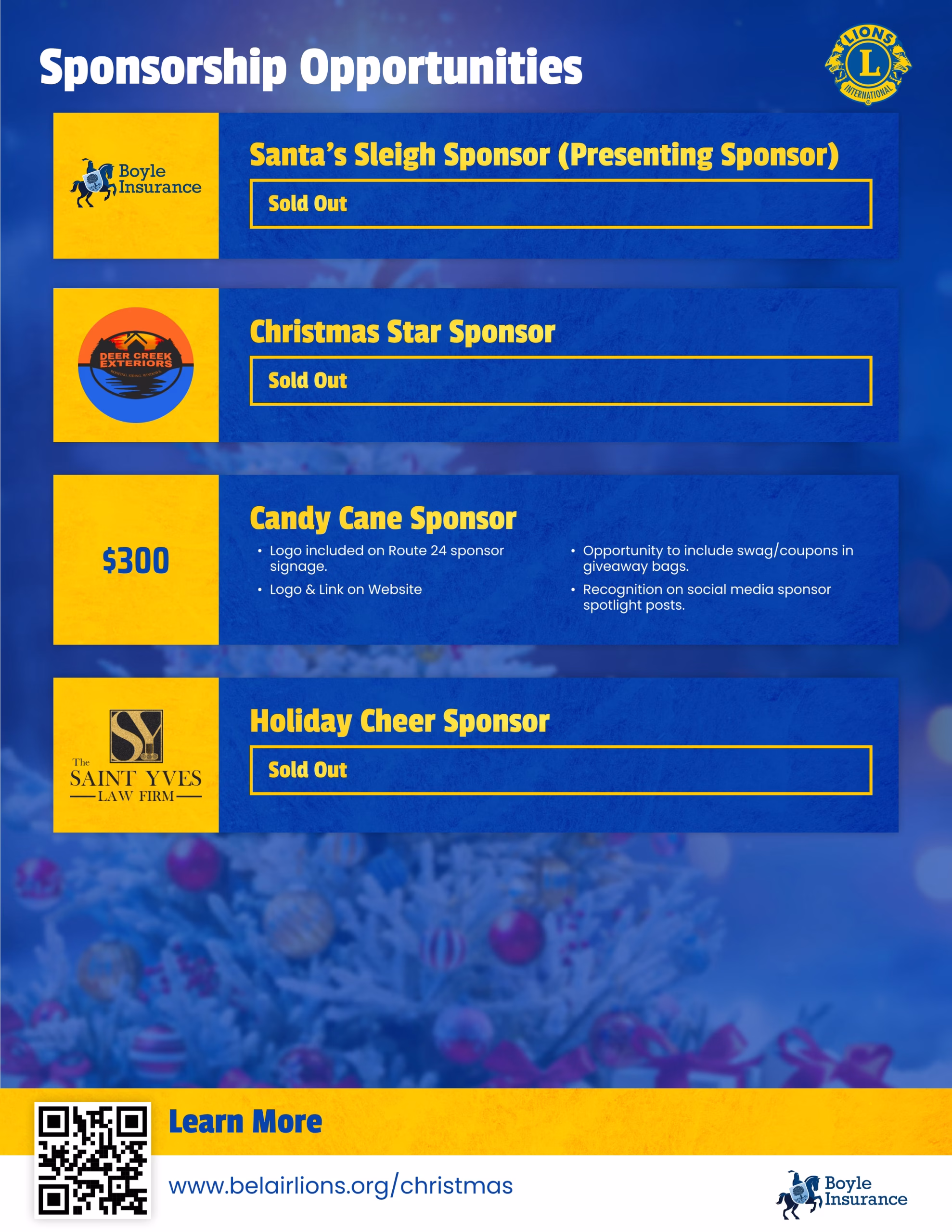 Bel Air Lions Club Christmas Tree Lot Sponsorship Opportunities